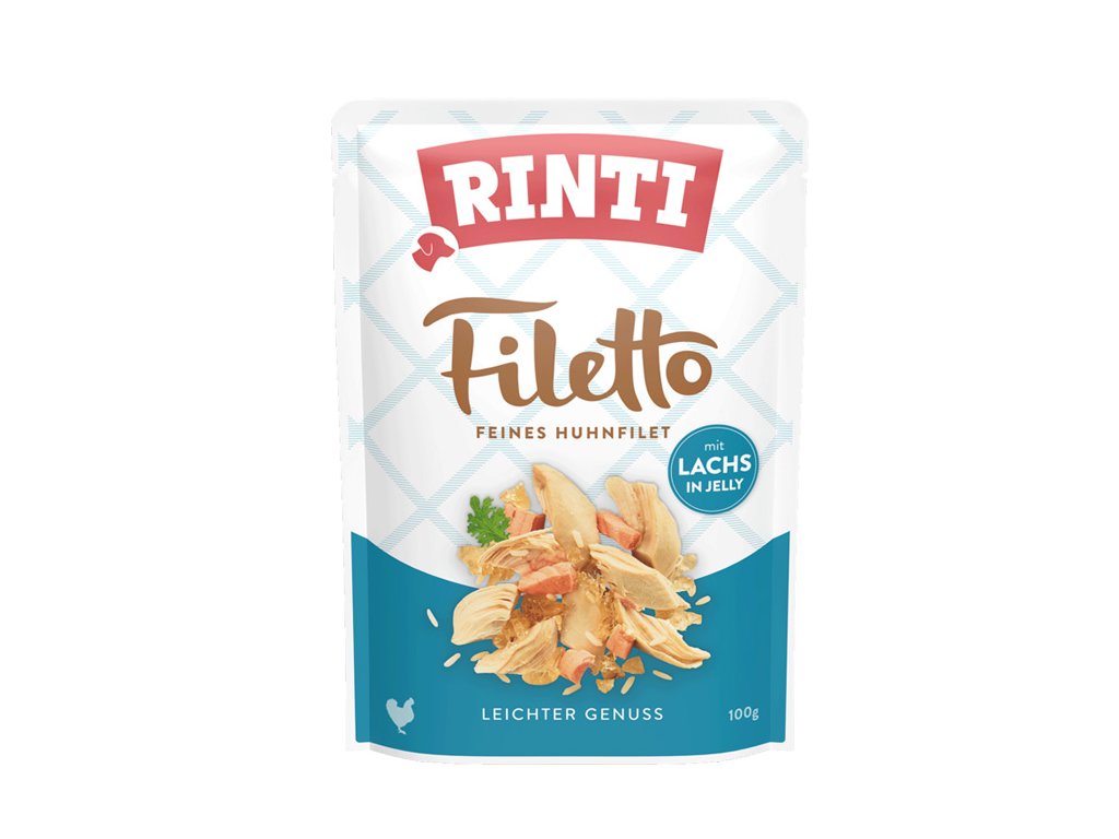 Rinti Filetto jsou delikátní kousky filet z kuřecího masa v jemné želatině doplněné o celé kousky lososa. Toto lahodné doplňkové krmivo balené v kapsičce obohatí jídelníček i těch nejnáročnějších psů. Praktické a snadno otevíratelné balení umožňuje podávat toto krmivo kdekoliv, a proto je ideální balení během dobrodružných cest s Vaším psím mazlíčkem.