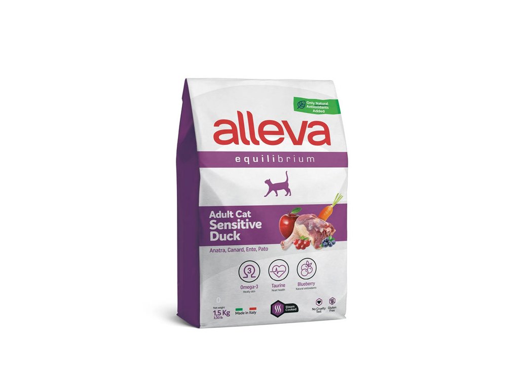Alleva EQUILIBRIUM cat duck sensitive je kompletní krmivo určené pro dospělé kočky s citlivým trávením. Krmivo s obsahem kachního masa, rýže, kukuřice, ovoce a zeleniny.
