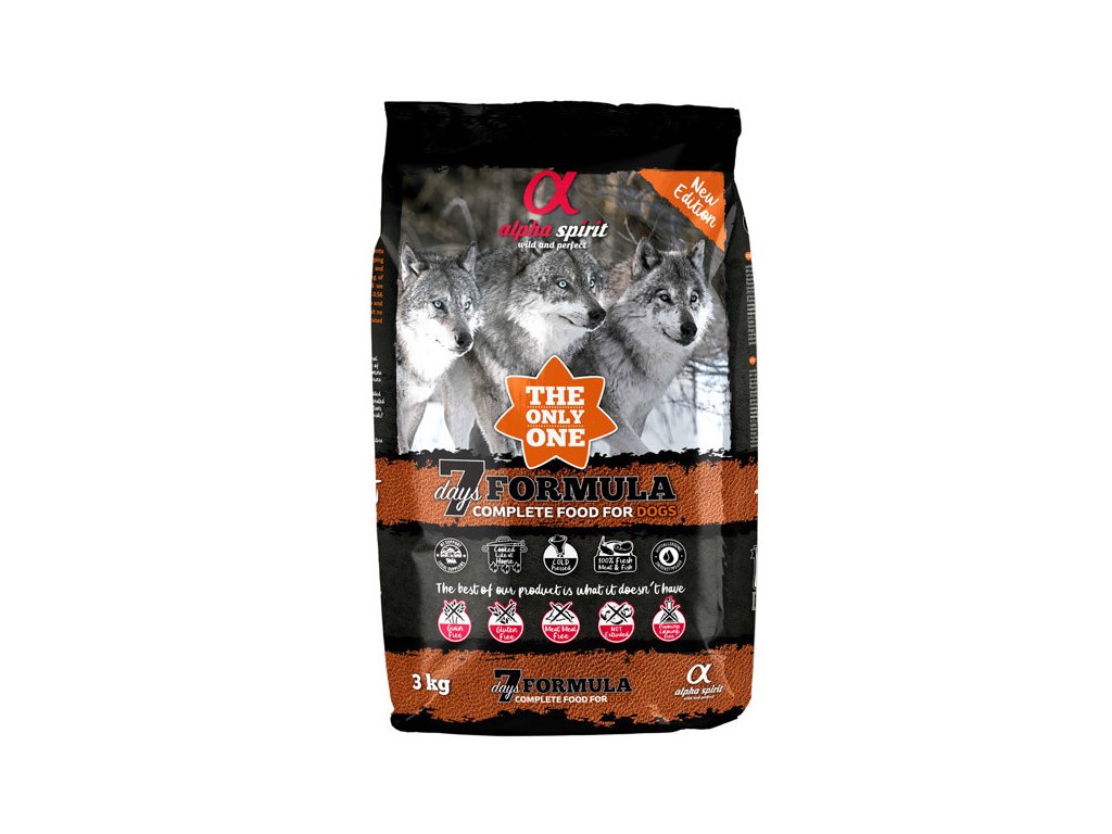Alpha Spirit The Only One - 7 Days Formula jsou kompletní za studena lisované granule vyrobené výhradně z čerstvého masa z regionálních chovů určené pro dospělé psy všech plemen.