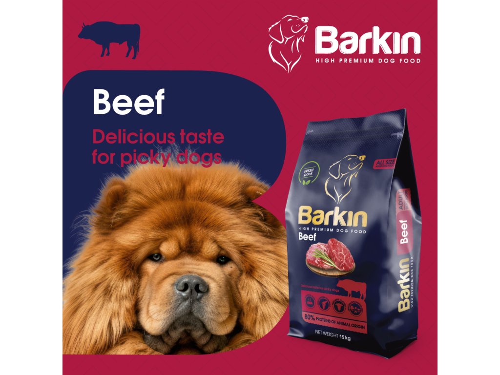 Barkin High Premium Adult Beef neobsahuje žádná umělá barviva, příchutě ani GMO. Mimoriadně chutné krmivo pro dospělé psy.