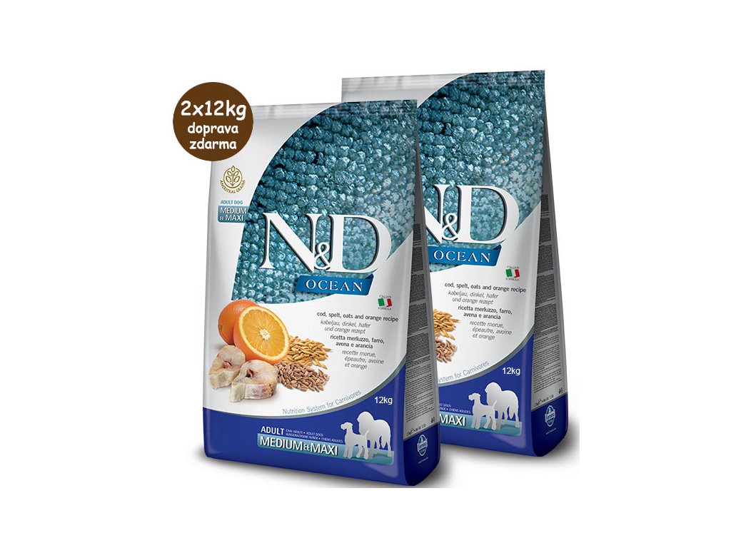 Farmina N&D Dog LG Adult Medium&Maxi Cod, Spelt, Oats & Orange 2x12 kg