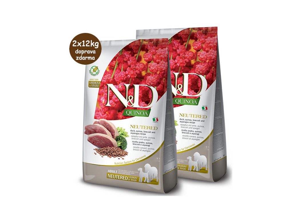 Farmina N&D GF Quinoa Dog Neutered Adult Medium & Maxi Duck, Broccoli & Asparagus 2x12kg