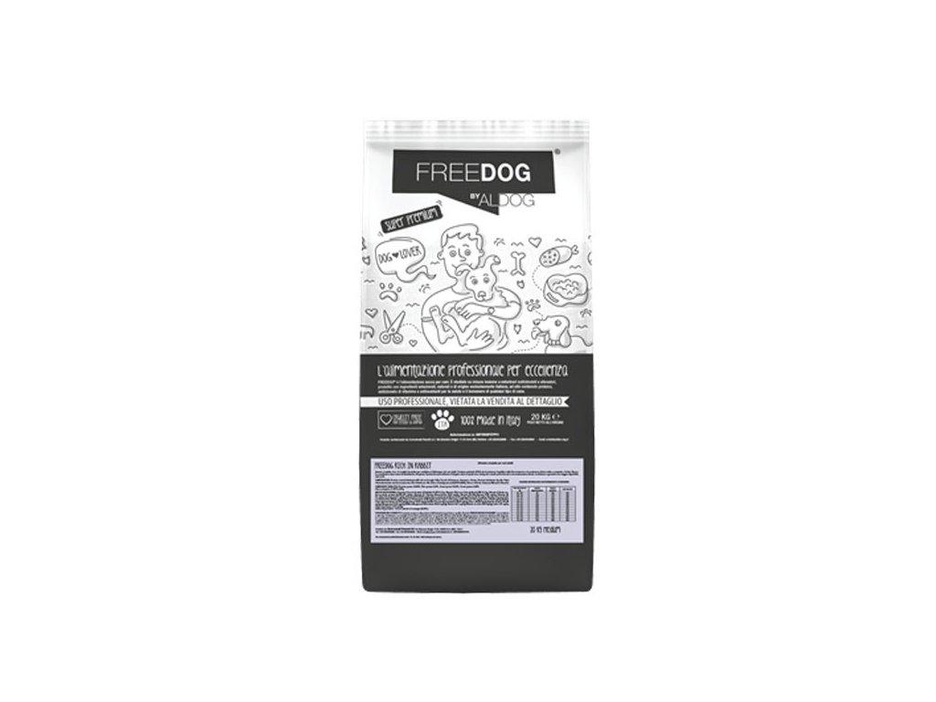 Freedog Rich in Rabbit Medium&Maxi je kompletní krmivo s obsahem králičího masa pro psy středních a velkých plemen. Kompletní krmivo připravené z vybraného králičího a vepřového masa pro zajištění dlouhého a zdravého života dospělých psů. Obsahuje prebiotika (FOS), která podporují rovnováhu bakteriální flóry a tvorbu pevných a kompaktních výkalů a chlorid cholinu, který přispívá k procesu asimilace tuků. Bezlepková formule.