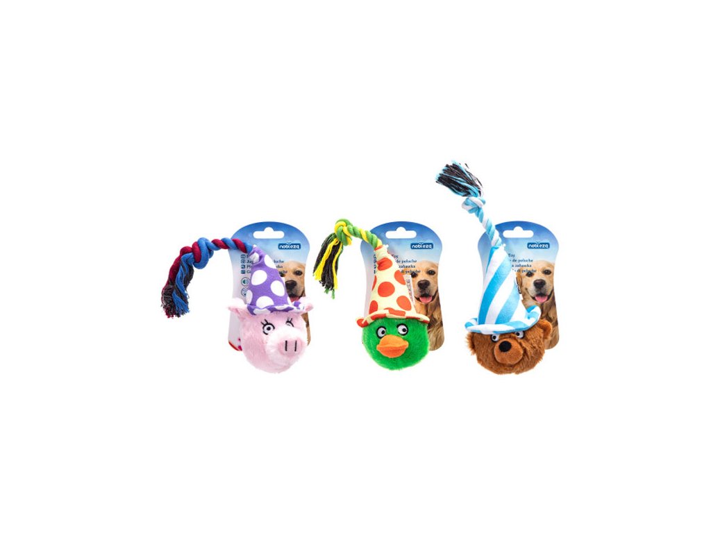 Plyšová hračka Nobleza - Zvířátko v čepičce se šňůrou představuje 3 různé druhy zvířátek, která jsou ideálním společníkem pro všechna plemena psů. S pískadlem pro upoutání pozornosti a s hebkým povrchem. Extra šňůra na žvýkání. Vhodné k praní v pračce.
