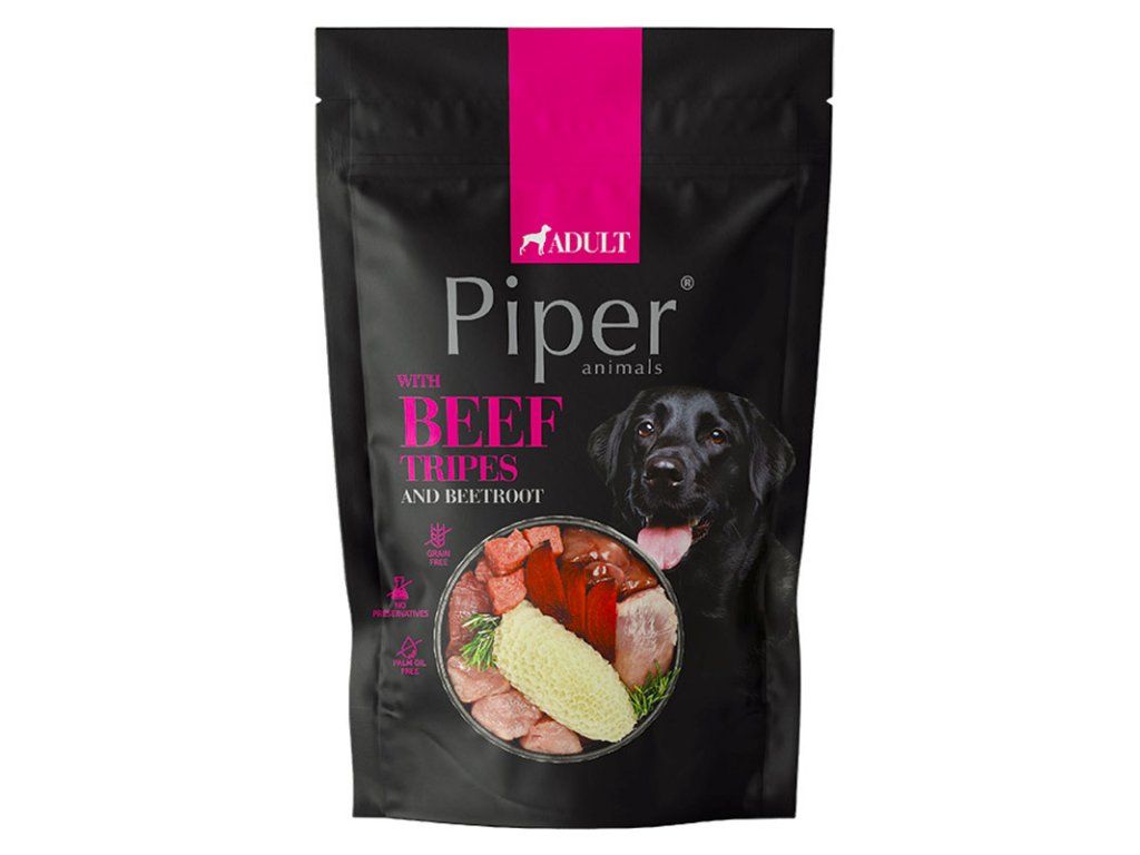 Piper Dog Adult - hovězí žaludky s červenou řepou je kompletní krmivo pro dospělé psy všech plemen. Krmivo s vysokým obsahem methioninu a cystinu. Snižuje potřebu doplnit tyto aminokyseliny přidáním obilných produktů. Hovězí žaludky jsou zdrojem selenu, železa a mědi - minerálů, které hrají důležitou roli při stimulaci obranných funkcí těla, jakož i při stimulaci antioxidačních vlastností tělních tekutin.