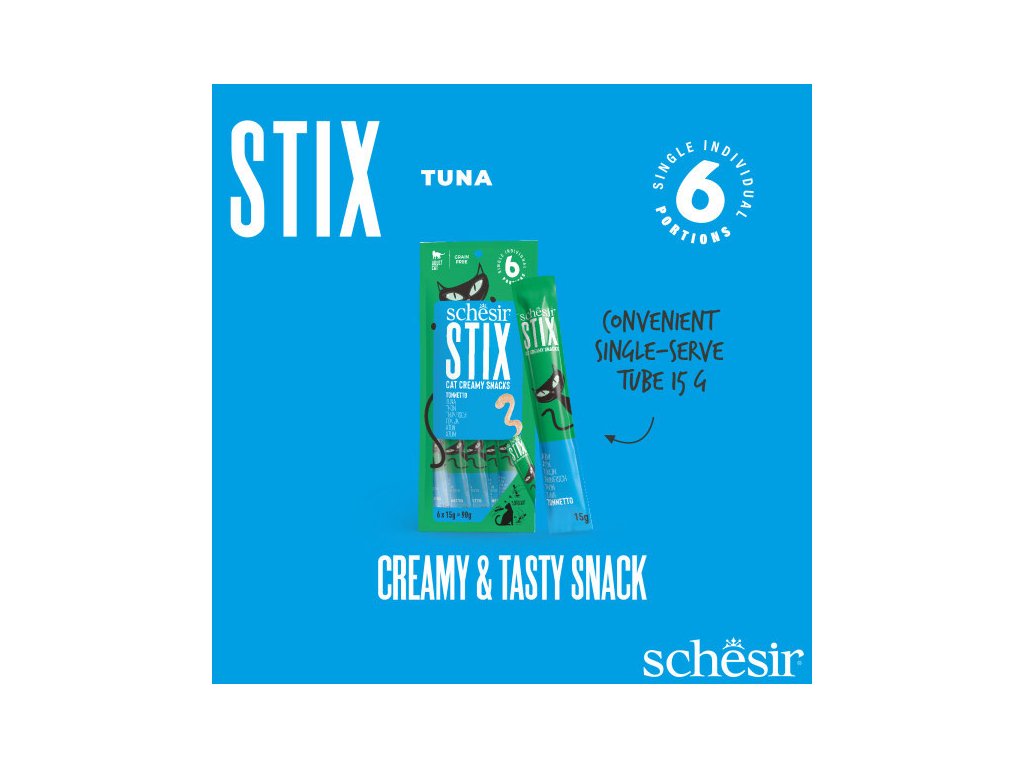 Schesir Cat Stix je rada jemných produktov krémovej textúry vyvinutá k potešeniu a odmeneniu vaší kočky. Zároveň však plní veľmi dôležitú funkciu hydratácie. Je to ideálny snack medzi jedlami plný bielkovín s nízkym obsahom tuku. Tyčinku môžete použiť aj ako topping, čím zvýšite atraktivitu pôvodného jedla. Vhodné pre všetky mačky od 4. mesiaca života.