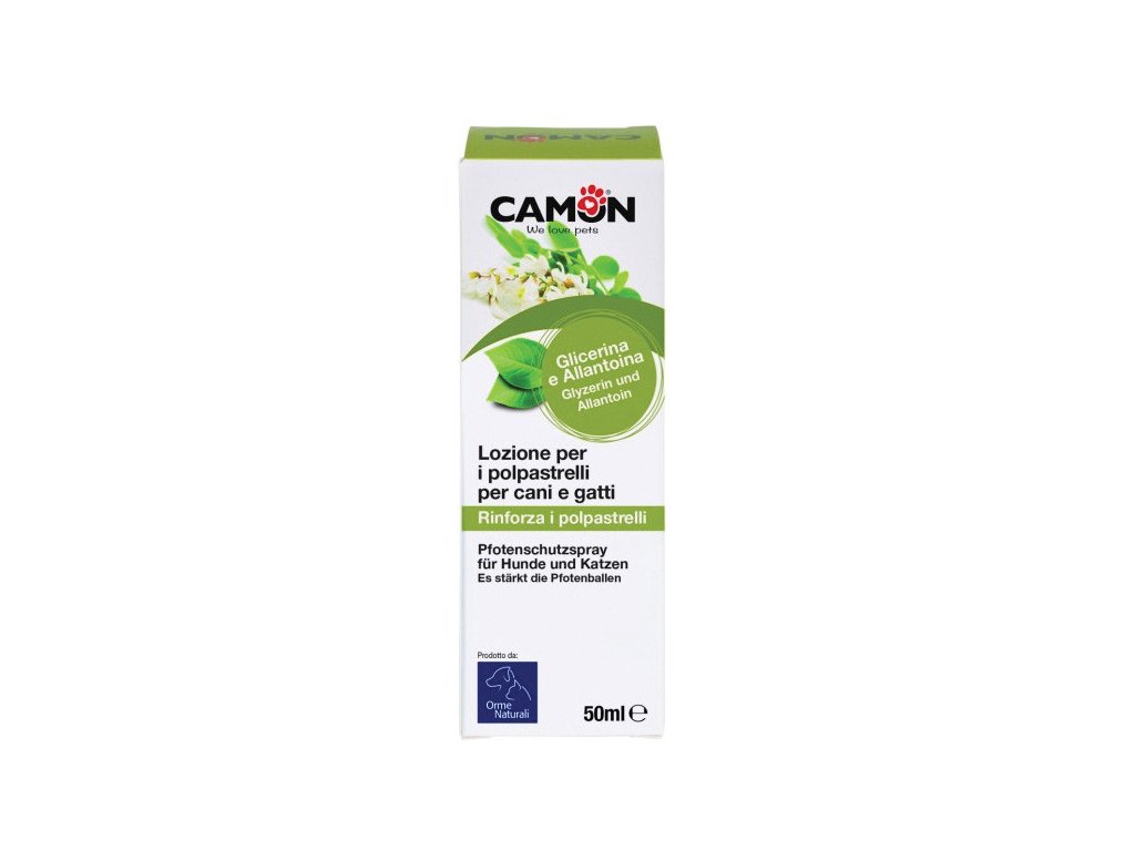 Ochranný balzám na tlapky Camon pro psy a kočky ve spreji chrání a posiluje polštářky na tlapkách psů a koček před poškozením a podrážděním. Výborný pomocník zejména v zimním období, chrání před nástrahami mrazu, sněhu a posypové soli.