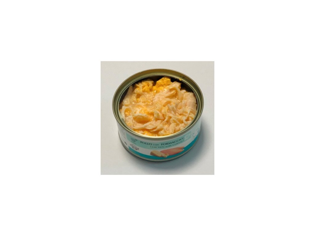 Složení: 60% kuřecí filety vařené ve vlastním vývaru, sýr 5%, rýže