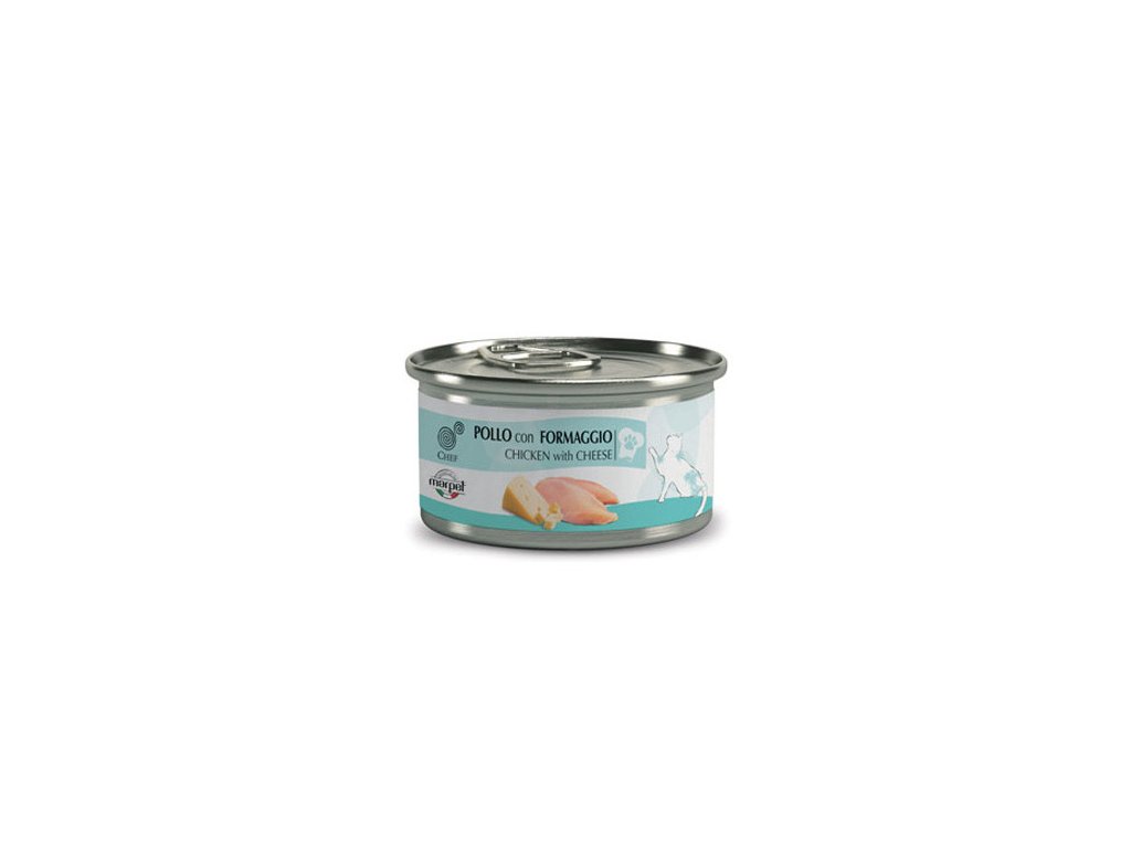 Chef Cat Adult Sterilized Kuřecí filety a sýr - doplňkové krmivo pro dospělé kočky. Filety z kuřecího masa vařené ve vlastním vývaru, nakrájené na proužky, doplněné chutným sýrem. Mléčný sýr je mimořádně chutným doplňkem k masu. Díky nízkému obsahu tuku vhodné i pro sterilizované kočky. Bez barviv a konzervantů. Určeno pro ty nejnáročnější kočky.