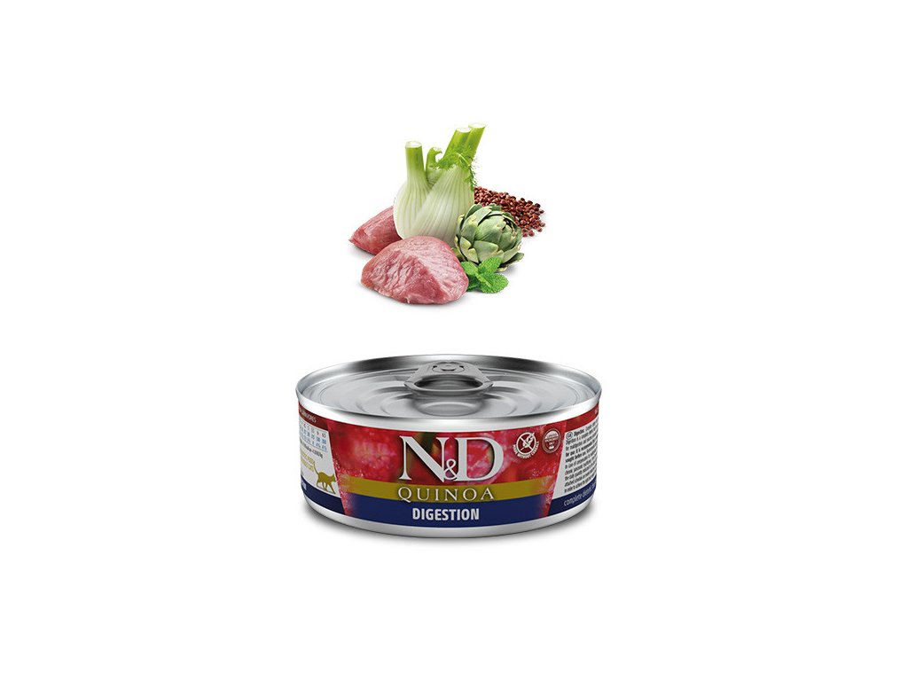 Farmina N&D Quinoa Digestion je kompletní dietní krmivo pro kočky na kompenzaci poruch trávení a exokrinní pankreatické nedostatečnosti.