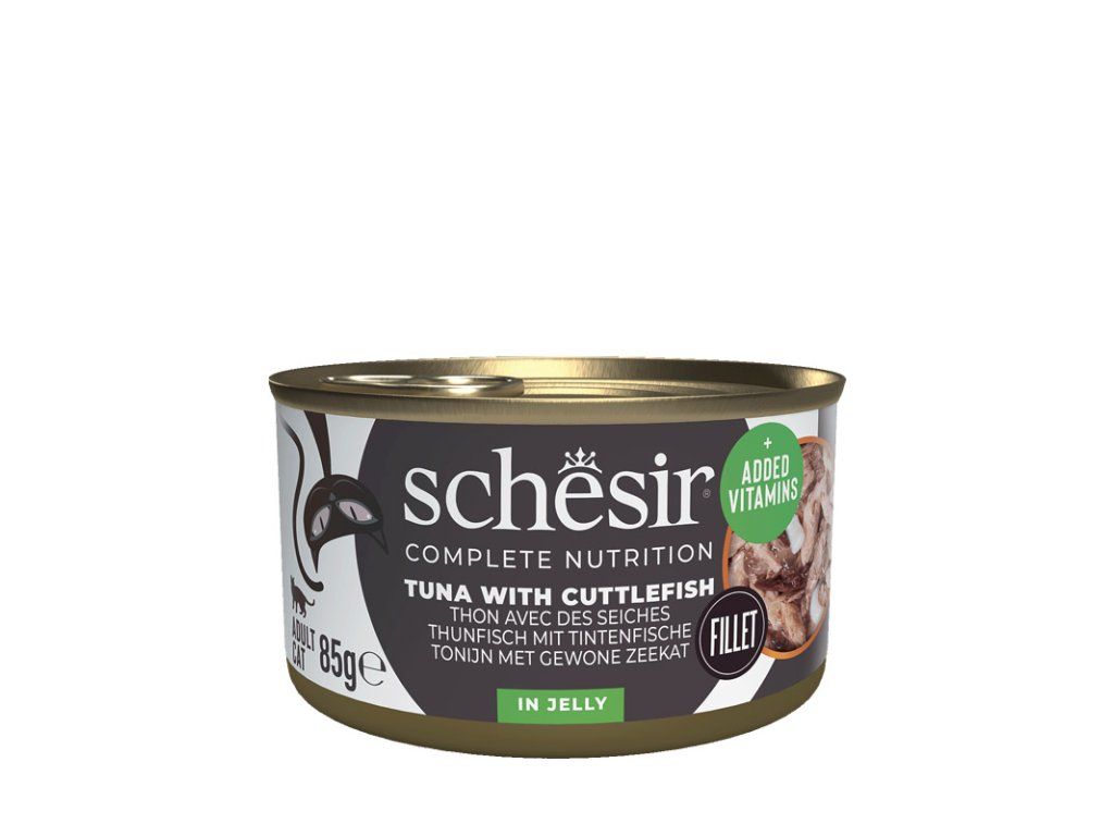 Schesir Cat C&B Wet Adult - Tuňák se sépií v želé je kompletní a vyvážené krmivo ve formě filetů z tuňáka s kousky sépie určené pro dospělé kočky. Doplněné o vitaminy a minerální látky z něj dělají plnohodnotné krmivo vhodné ke každodennímu krmení.