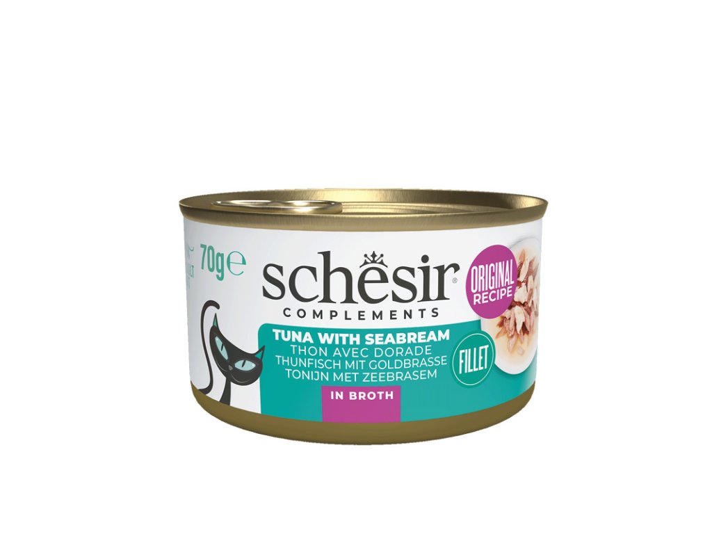Schesir Cat Complements - Tuňák s pražmou je doplňkové krmivo pro dospělé kočky všech plemen. Původní originální receptura Schesir v novém 70g balení.