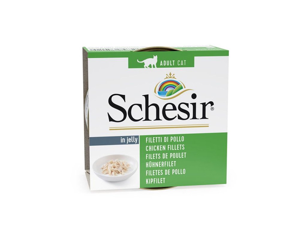 Schesir Jelly - kuracie filety je lahodná strava pre vášho mačacieho maznáčika: 100% prírodné prísady, bez pridaných konzervačných látok a farbív. iba tie najlepšie časti z kuraťa, dusené a ručne spracované v jemnej želatine.