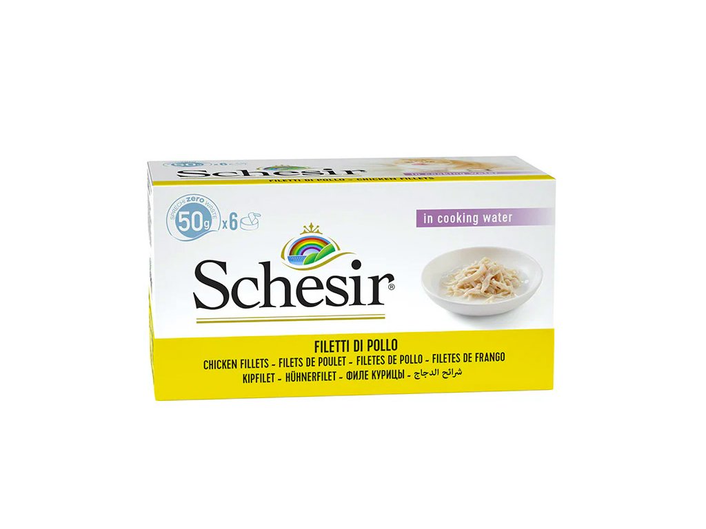 Schesir Multipack - kuřecí je lahůdka v podobě celých kousků z kuřecích prsou s rýží. Při výrobě jsou použity jen celé kousky masa z kuřete, žádné kosti, vnější kůže ani vnitřnosti nejsou zapracovávány do konzerv.