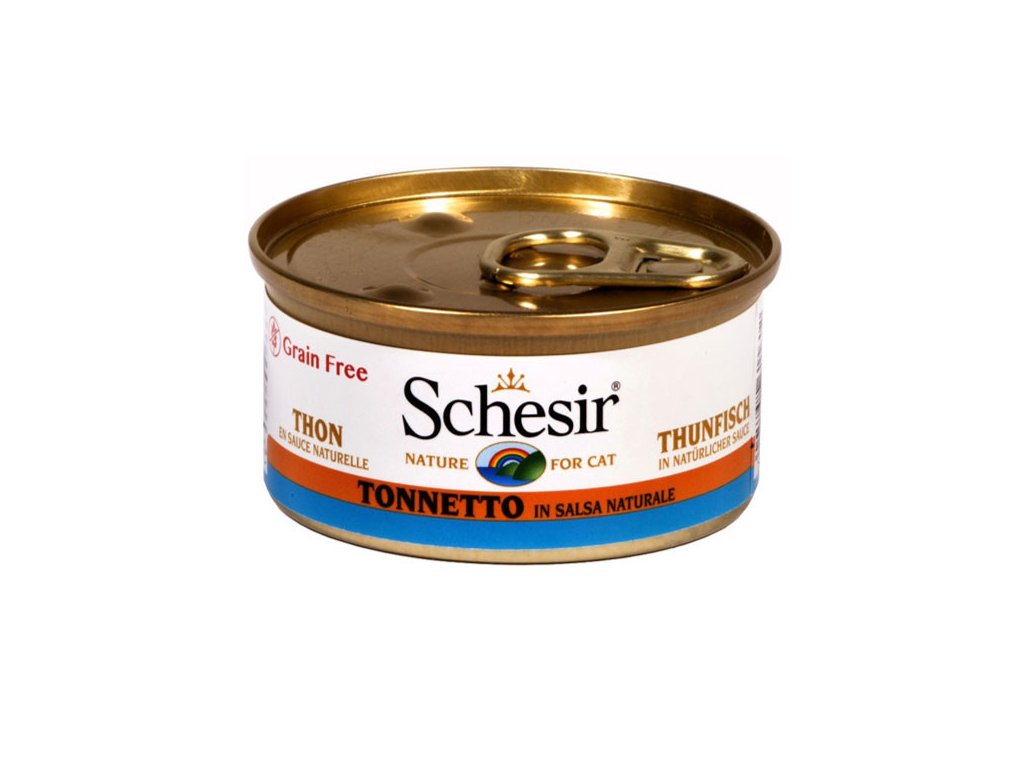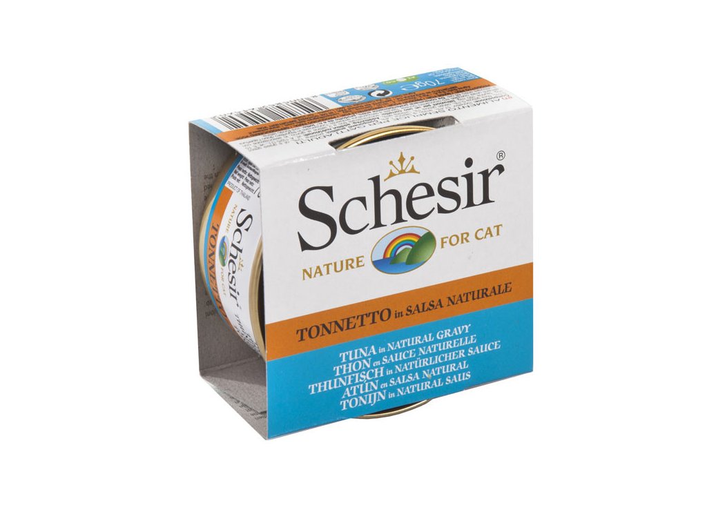 Schesir - tuňák v omáčce je špičková kvalita pro dospělé kočky se 100% přírodními složkami, dušený v páře v přírodní omáčce. Bez přidaných barviv a konzervačních látek, s tapiokovým škrobem pro obohacení chuti všech dospělých koček.