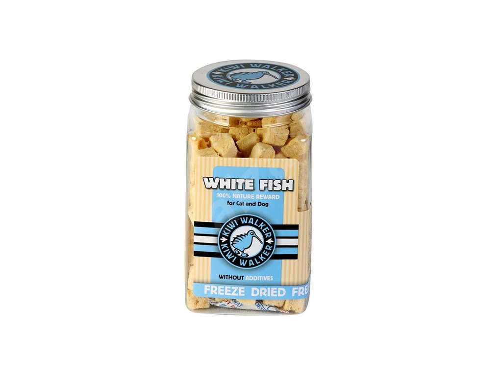 Mrazem sušené bílé druhy ryb od společnosti KiwiWalker je ten nejzdravější lyofilizovaný pamlsek pro Vašeho psa malého nebo středního plemene nebo kočku vhodný v každé fázi života. Suroviny neobsahují přidaná barviva, konzervační látky ani jiné přídavné látky.