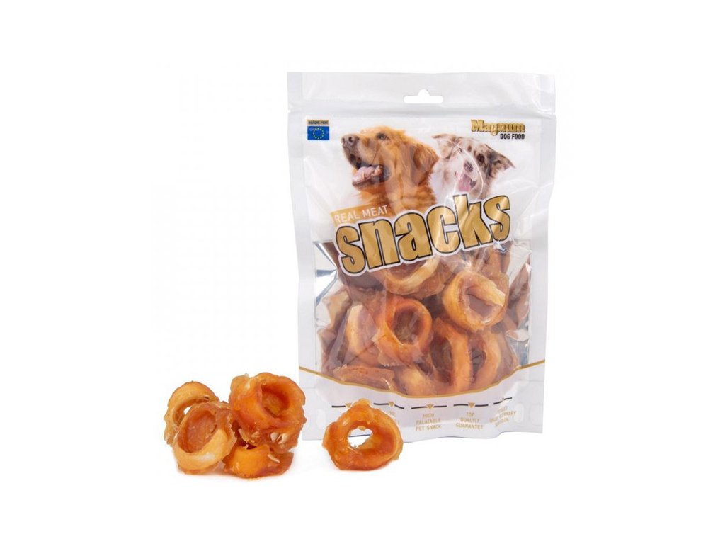 Magnum Dog Food Cod Roll with Chicken je pamlsek ze sušeného masa vhodný pro všechna plemena psů. Chutná a zdravá pochoutka ze skutečného masa. Obsahuje dva druhy živočišných složek: treska a kuře.100% masová pochoutka pro psy