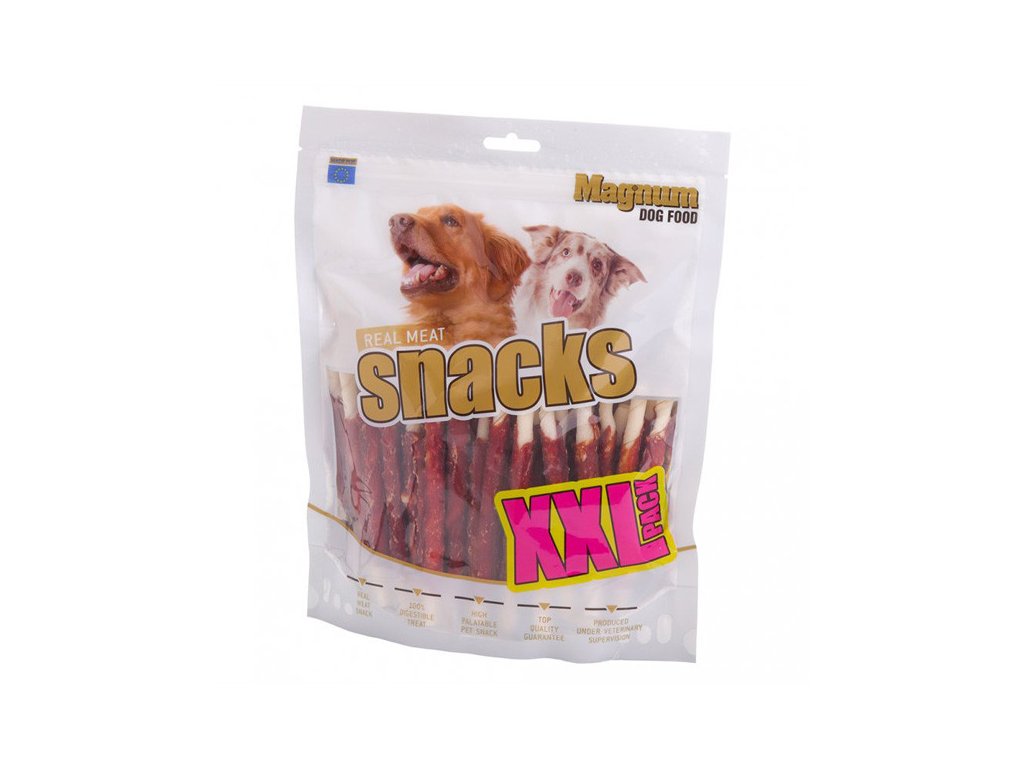 Magnum Dog Food Duck Roll on Rawhide Stick je pamlsek ze sušeného masa vhodný pro všechna plemena psů. Chutná a zdravá pochoutka ze skutečného masa. Obsahuje dvě živočišné složky: kachna a hovězí.100% masová pochoutka pro psy