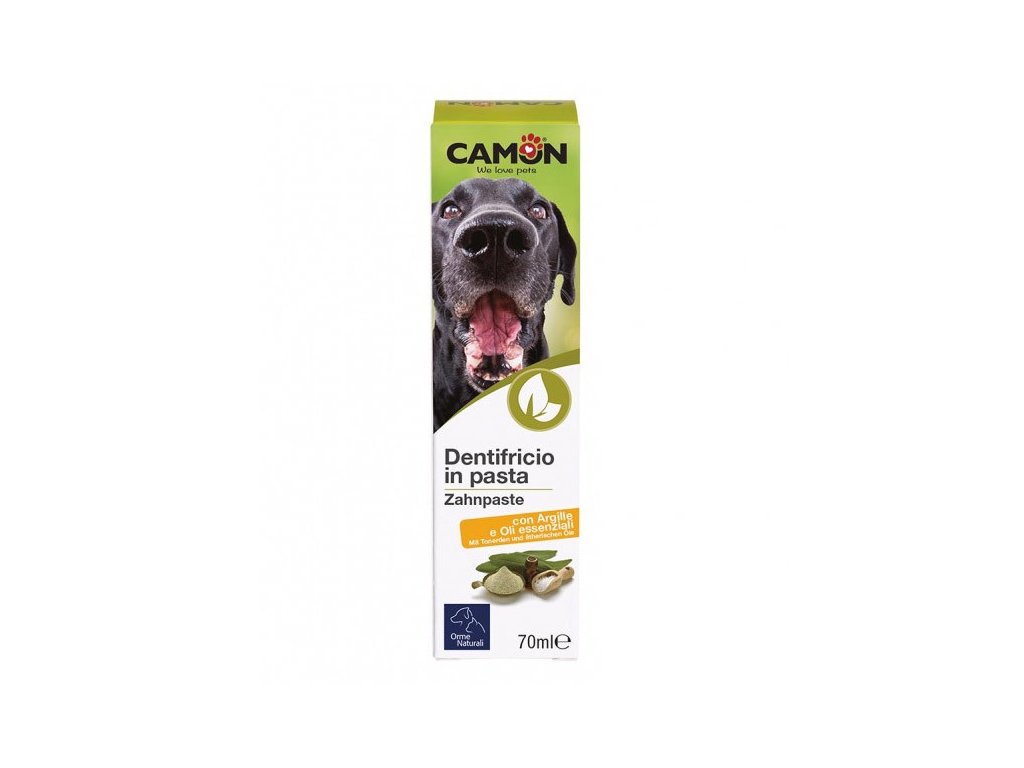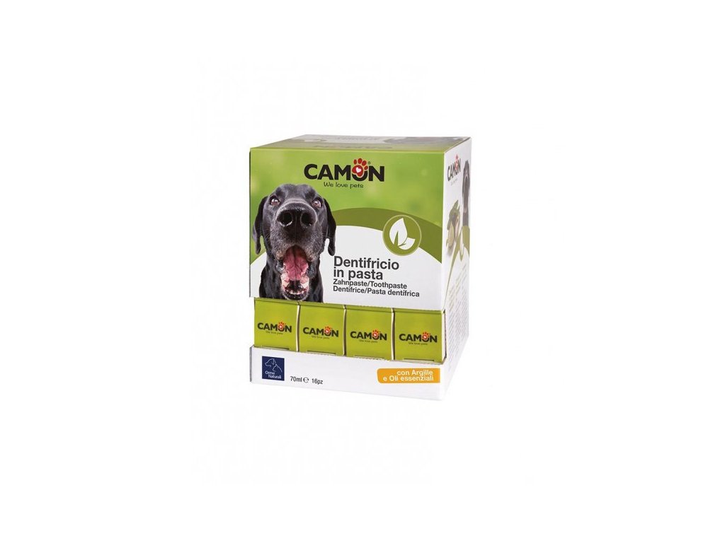 Zubní pasta Camon s výtažky z bahna a esenciálními oleji je určena pro každodenní dentální hygienu psů. Tato přírodní zubní pasta založená na výtažcích z bahna a esenciálních olejích hloubkově čistí zuby s jemnou obrušovací funkcí. Bezpečně chrání před tvorbou zubního plaku a zanechává svěží dech. Zároveň posiluje zuby a dásně.