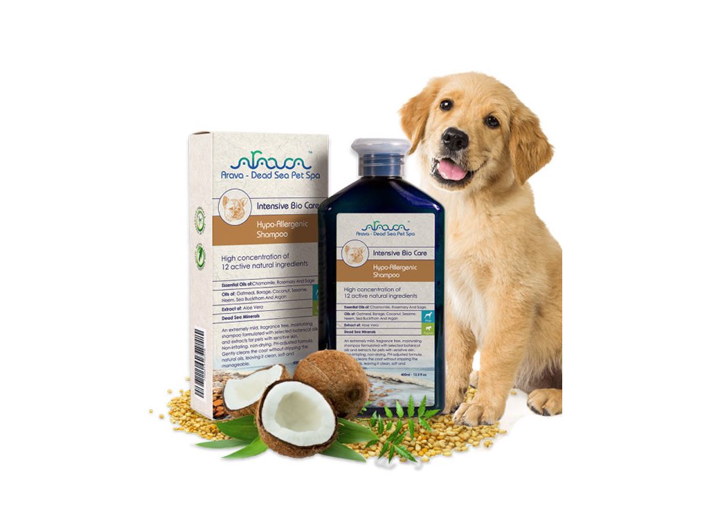 Arava Hypoalergenní šampon je hydratační extrémně jemný šampon neparfémovaný, vyrobený z vybraných esenciálních olejů a extraktů určený pro nejcitlivější zvířátka.