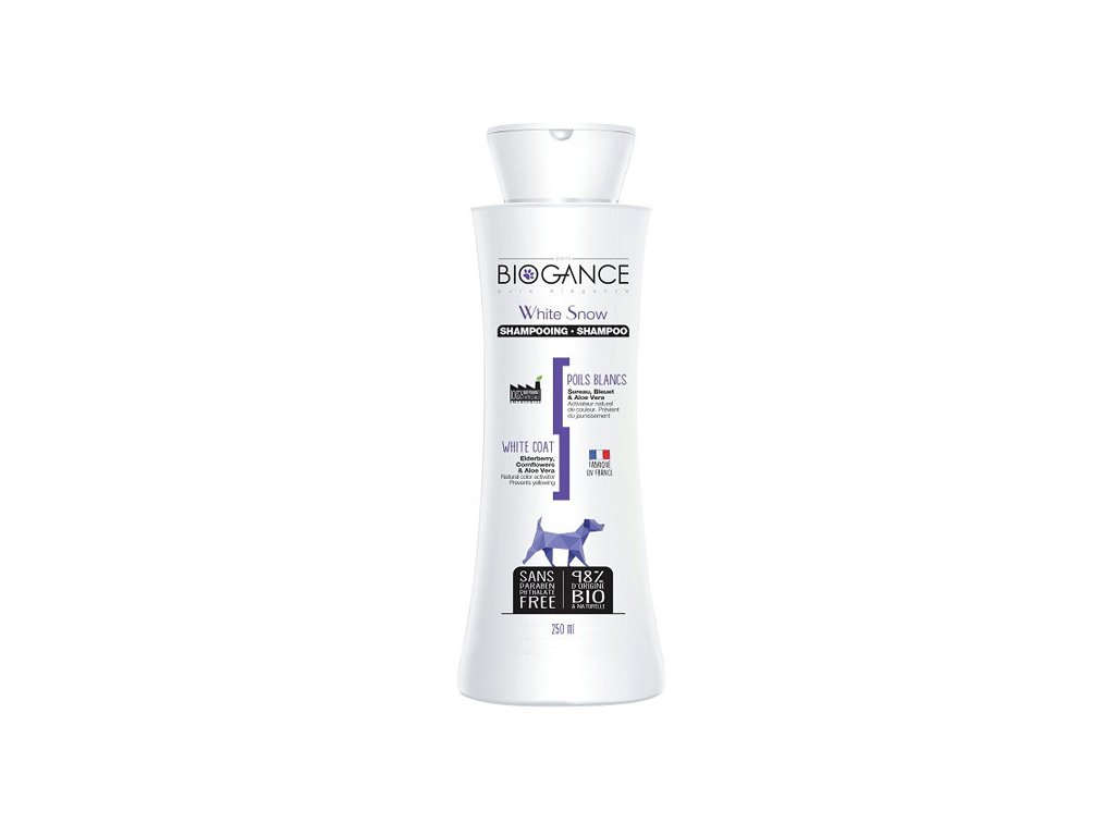 Biogance šampon White Snow obsahuje bioaktivní látky, bez parabenů. Výtažek z bezu zajišťuje jemné čištění, ošetření a obnovu přirozeného zabarvení srsti. pH speciálně vyvážené pro světlé a bílé zbarvení srsti. Vhodný i pro štěňata a světlé nebo bílé kočky.