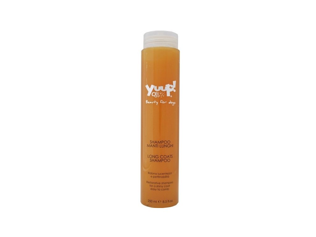 Yuup Home! šampon na dlouhou srst s přírodními složkami Ginkgo biloba, rýžovými bílkovinami a slunečnicovými fytoceramidy. Speciálně vyvinutý pro psy a kočky s dlouhou srstí. Srst restrukturalizuje a posiluje díky komplexu kvarternizovaného keratinu, vitamínu C + E + panthenolu. Ginkgo biloba vyživuje srst od kořínků.