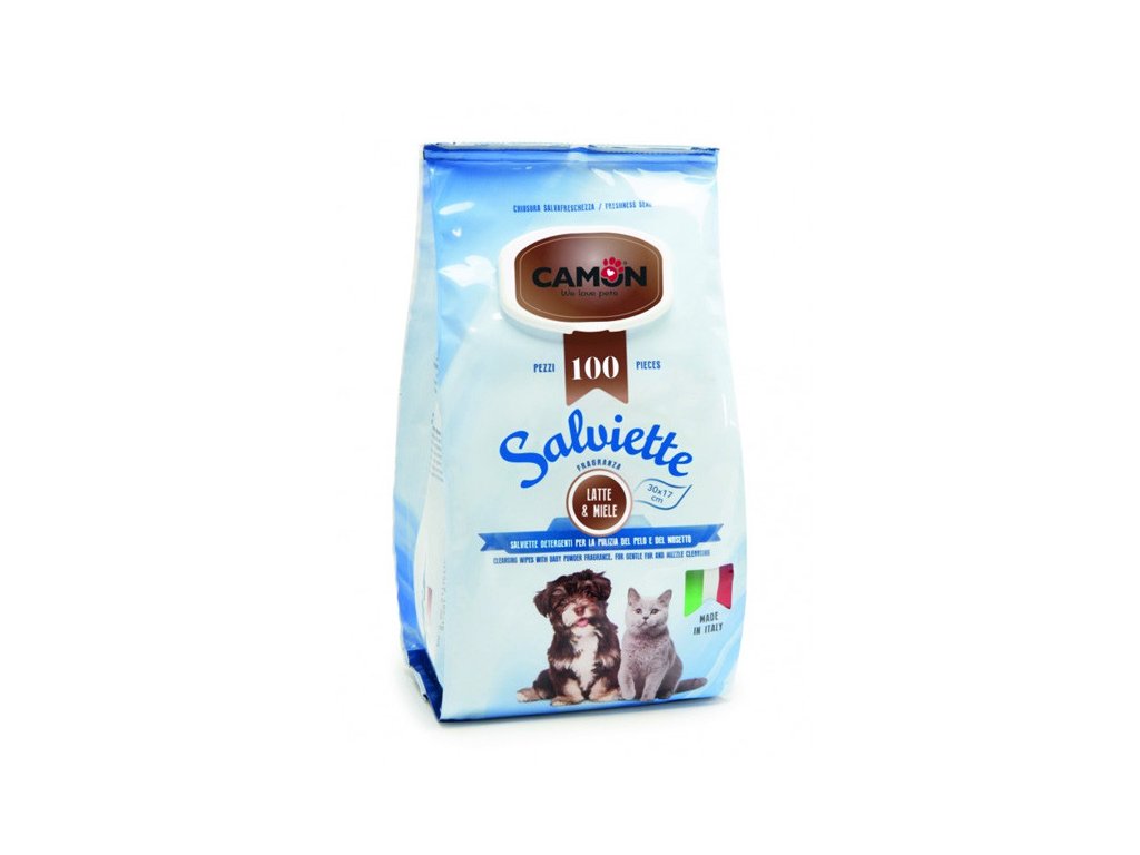 Vlhčené ubrousky pro zvířata Camon s vůní mléka a medu 100 ks