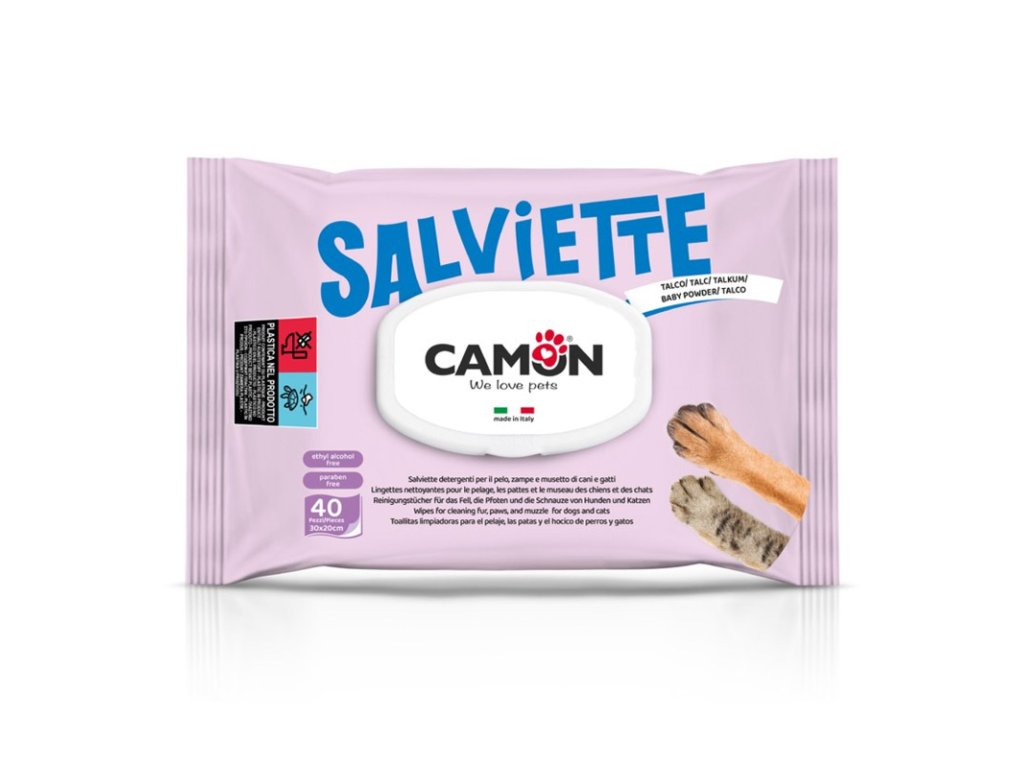 Vlhčené utěrky pro zvířata Camon s vůní dětského pudru 40ks