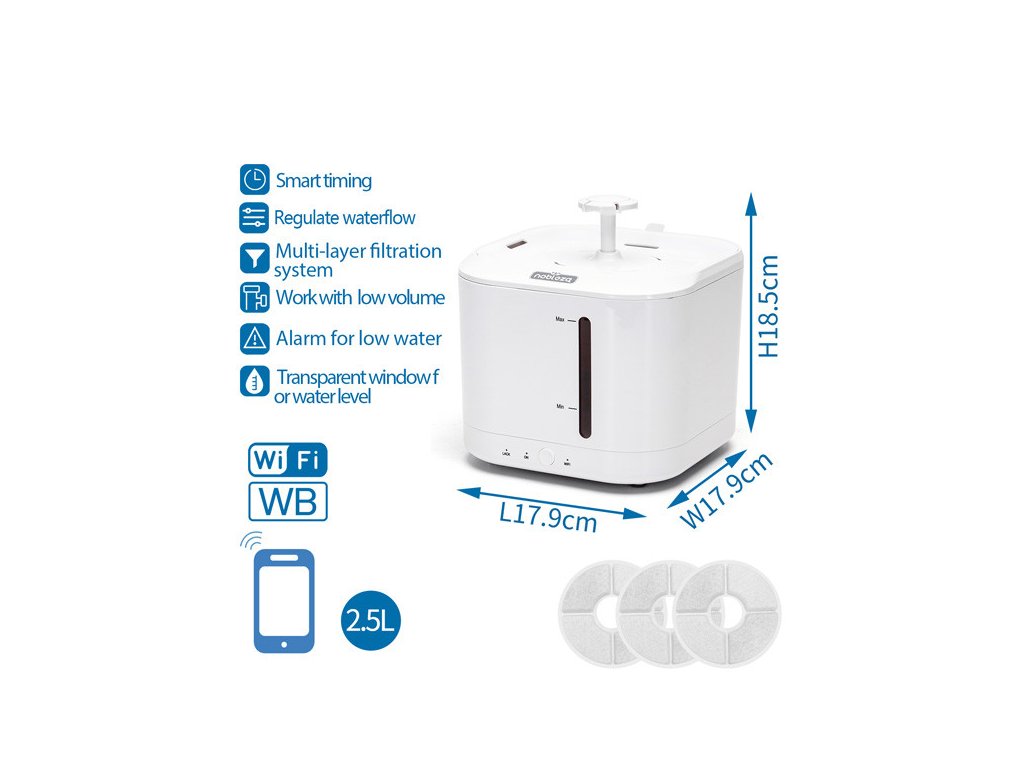 Nobleza SMART vodní fontána pro zvířata na podporu pitného režimu vašeho domácího mazlíčka. Proud vody stimuluje potřebu vašeho zvířete udržovat vhodný pitný režim, čímž se předchází zdravotním problémům s ledvinami. Díky propojení s vaším mobilním telefonem vám umožní sledovat pitný režim vašeho zvířete, ať už se nacházíte kdekoli.